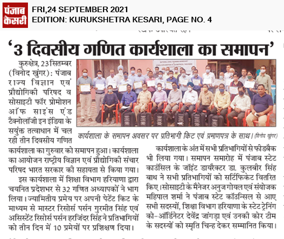 अध्यापकों ने 10 प्रमेयों पर प्राप्त किया प्रशिक्षण administrator September 24, 2021 0 Comments You Might Also Like राज्य स्तरीय विज्ञान प्रश्नोत्तरी में यदुवंशी शिक्षा निकेतन नारनौल की टीम रही विजेता March 26, 2021 राजकीय वरिष्ठ माध्यमिक विद्यालय, गांव दुधला-मोरथला में मोबाइल विज्ञान प्रयोगशाला पर कार्यशाला लगाई : कुरुक्षेत्र केसरी (20 अप्रैल) April 20, 2019 शिक्षक बच्चों को समझायेंगे ज्योमेट्री थ्योरम – गुरमीत September 23, 2021 Leave a Reply Cancel reply Save my name, email, and website in this browser for the next time I comment.