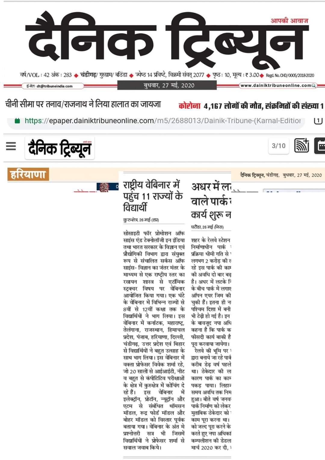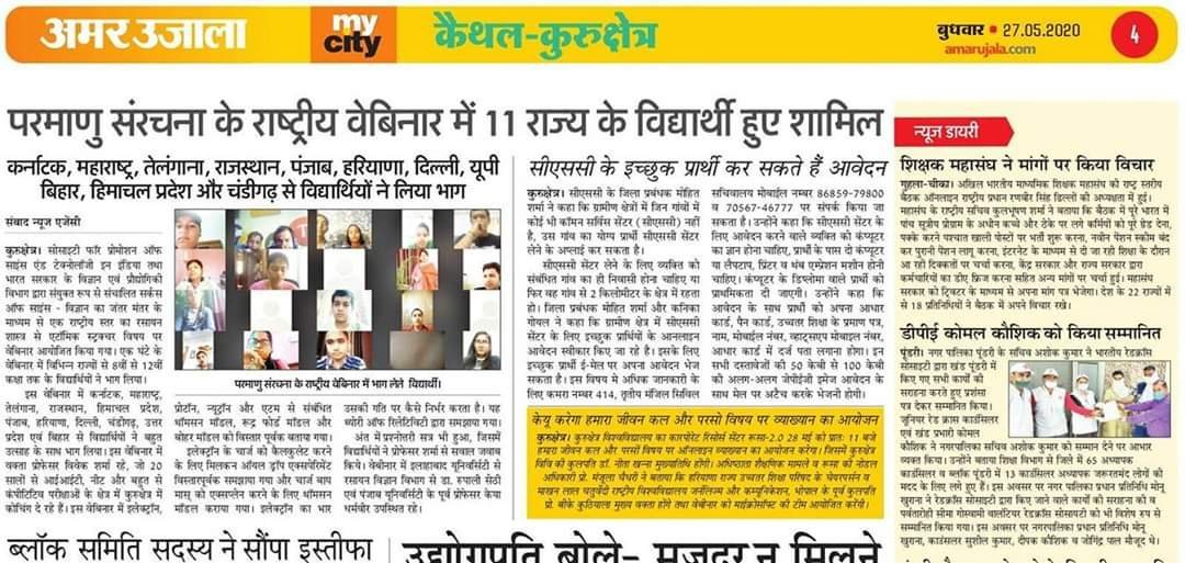 परमाणु संरचना के राष्ट्रीय वेबीनार में 11 राज्य के विद्यार्थी हुए शामिल