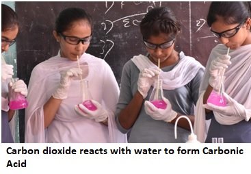 - Insert a straw into the flask. When breath is exhaled into the solution, the carbon dioxide from the person’s breath reacts with the water to form Carbonic Acid.