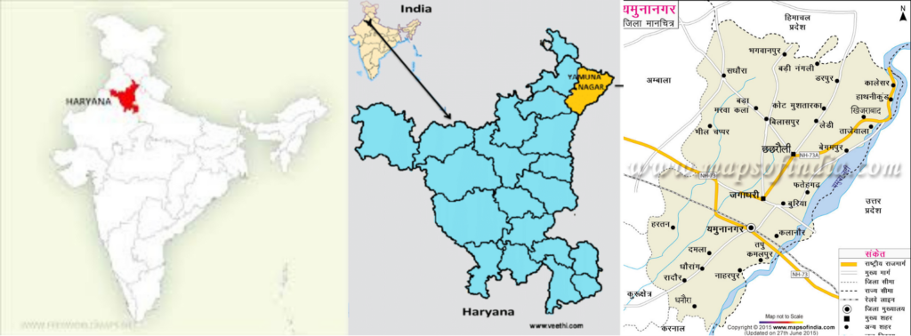 The Yamunanagar is a district in Haryana located at the north-east border of Haryana and touches the borders of Himachal Pradesh and Uttar Pradesh.
